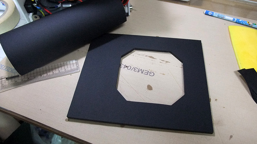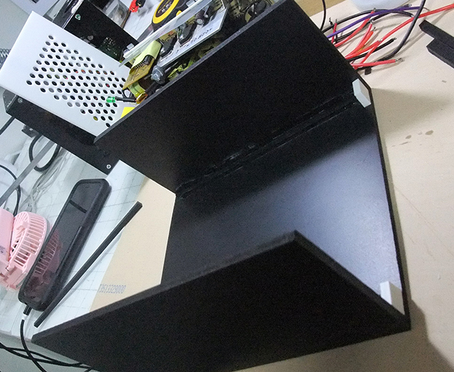 재료는 검정 포멕스 5T, 전면과 후면은 백색 아크릴 3T, 그리고 검은색 인테리어 필름지 조금이다.