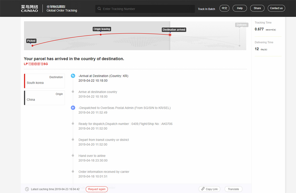 https://global.cainiao.com/ 여기서 조회 할수 있다.