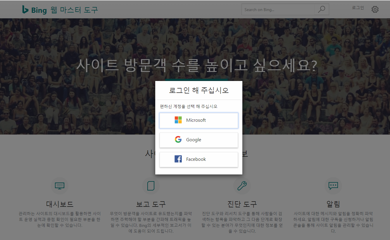 일단 www.bing.com 에 가서 bing웹마스터 도구라고 검색한다.