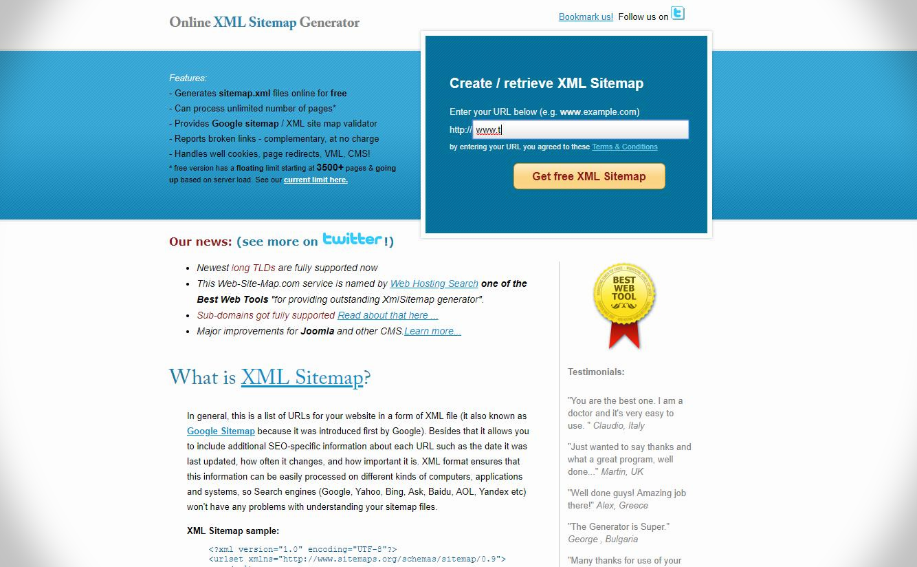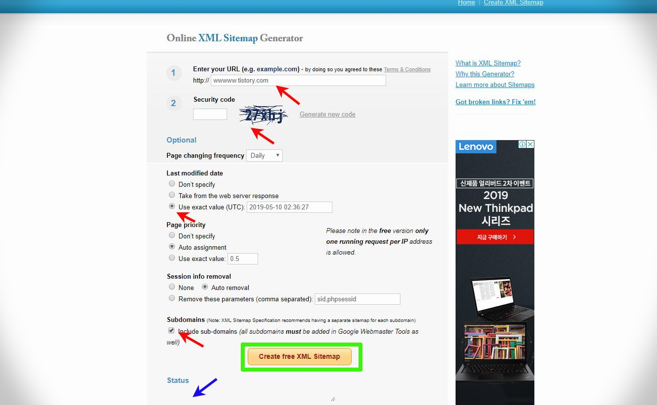 그리고 사이트맵도 등록을 해야 한다 먼저 사이트맵 만드는 http://www.web-site-map.com 로 접속해서 사이트맵을
