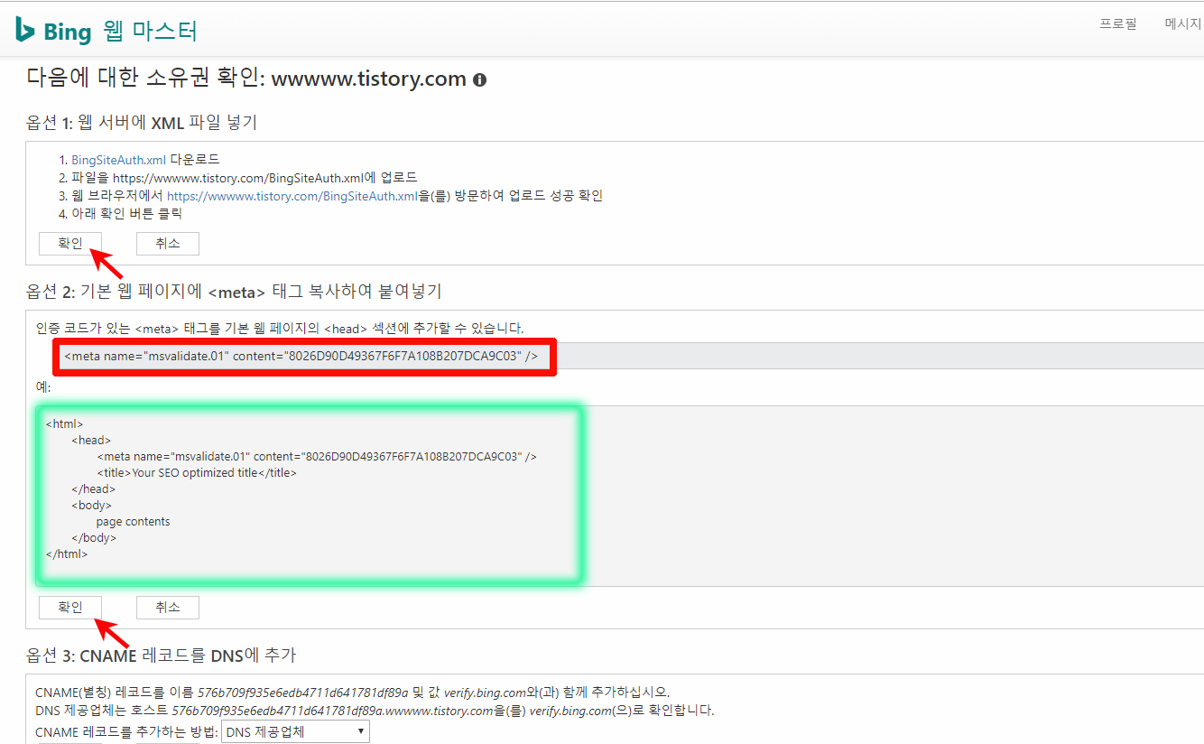 제대로 태그가 들어갔다면 아무 이상 없이 본인 소유확인이 이루어진다.
