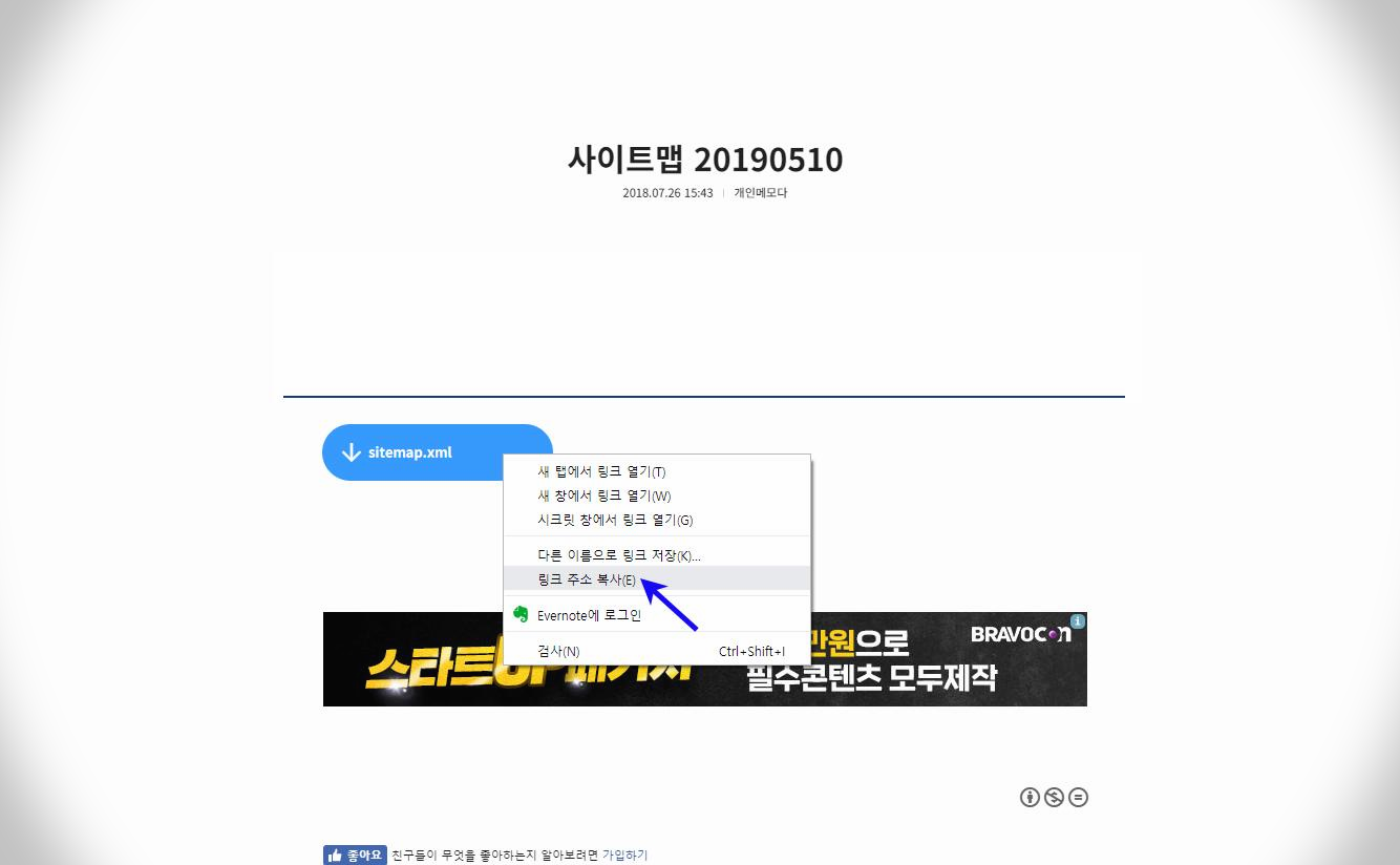 (아래에 사이트맵추가 넣는 방법 설명있다.)
