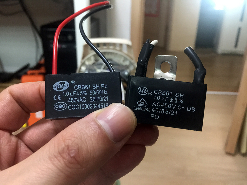 쇼핑몰에 돌아다니다 보면 1.0uf 짜리부터 시작해서 1.2uf 1.4uf 등등 많다.. 그냥 기존 선풍기의 동일한 용량의 콘덴서를