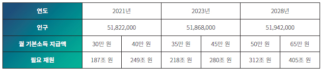 2021년부터는 월30~40만원, 2023년부터는 35~45만원, 2028년부터 50~65만원을 매월 지급하는 방식이