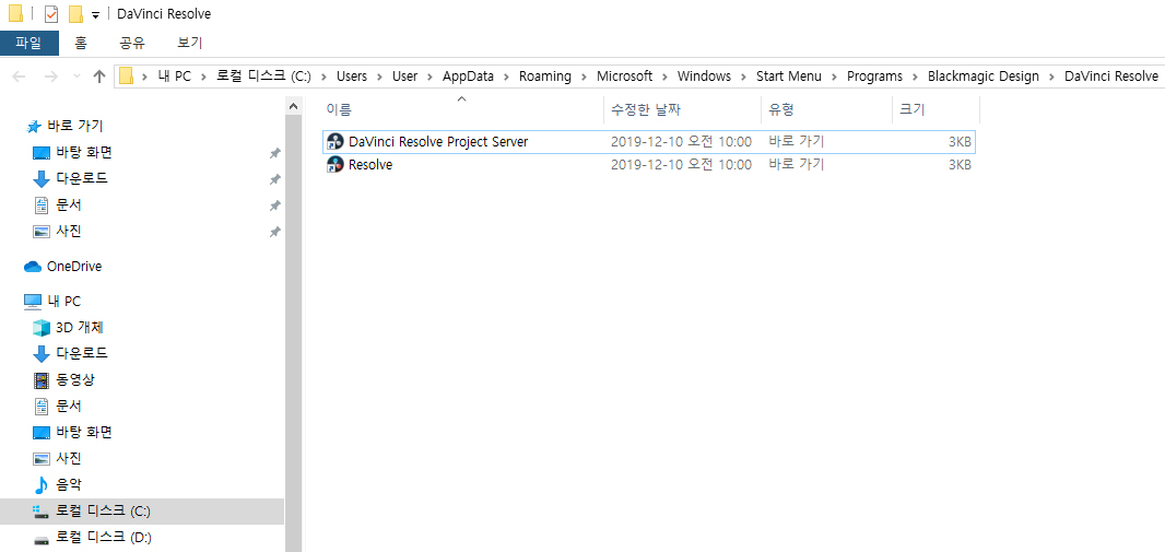 자 이제 설치가 다 되었다면, 바탕화면에 위와 같은 아이콘이 딱~~ 생긴다. 다빈치 리졸브 프로젝트 서버라는 아이콘과, 리졸브 프로그램 아이콘이다. 위의 아이콘은 팀별단위로 영상작업하는 공유폴더 같은 걸 만들어 주는데 같은 네트워크상에 존재한다면 저 프로젝트 서버로 통합 폴더 만들어서 사용하면 되지만, 우리는 개인이기 때문에 필요가 없다. 그냥 밑에 프로그램 아이콘만 실행시켜서 작업하면 된다.