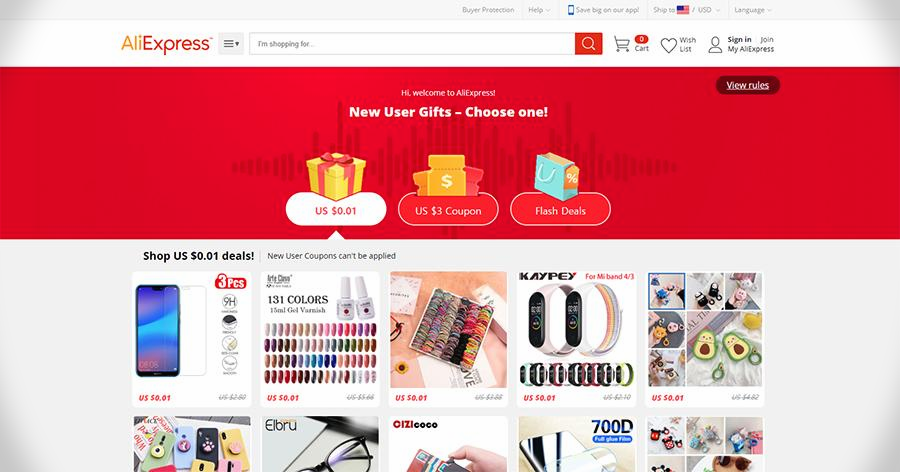 먼저 알리익스프레스 사이트 메인 화면이다. 기본적으로 영문 사이트다. 아~ 그전에 윈도우에 자체 깔려있는 인터넷익스플로러 보다는 구글 크롬브라우저로 사용하시는걸 추천한다. 빠릿하고 크롬에 최적화가 잘 되어 있는 느낌이다. 검색 또한 빠르게 잘된다. 개인적으로 익스플러에서 검색하면 뭔가 검색도 잘 안되고 많이 느린 감이 있었다.