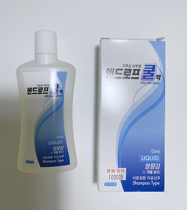 동네 근처 약국에 가서 받아온 덴드로프 쿨 지루성피부염 치료 샴푸다. 인터넷 검색에서도 나와같은 분들이 많아서 사용해본 사람이 추천해주길래 구입했다. 가격도 의외로 저렴해서 바로 구매해서 당일 저녁부터 써봤는데, 이 시원한 청량감... 멘톨 함유라 되게 시원했다. 어느 미용실에서 감겨주는 그 시원함보다 더 시원상쾌한~!