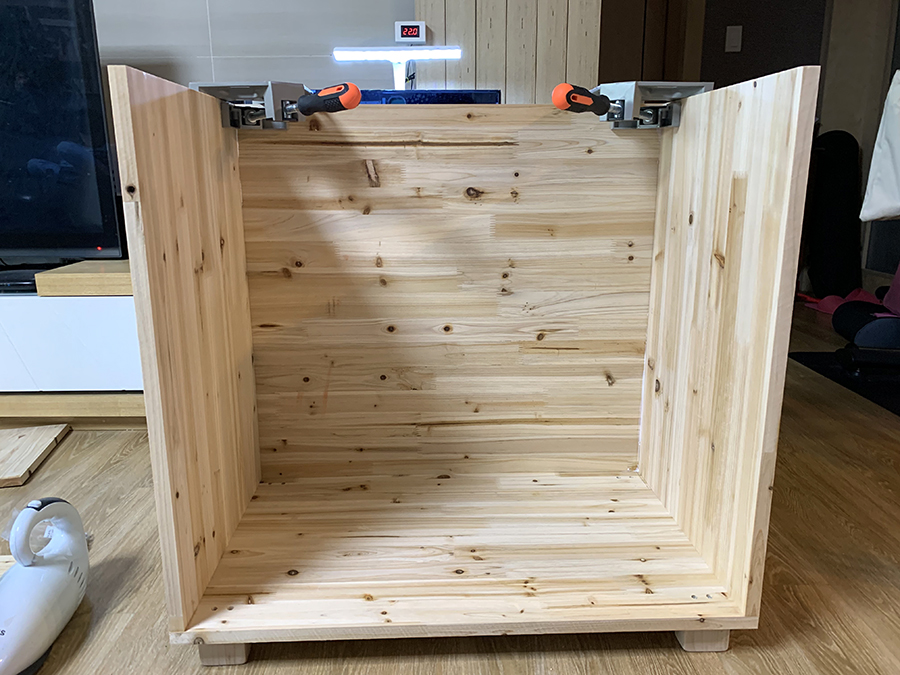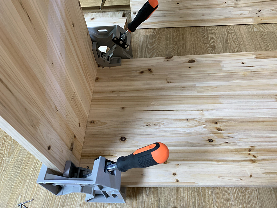 측면부터 조립시작~ 직각바이스로 고정후 피스작업 했다. 물론 목공본드도 붙였다.