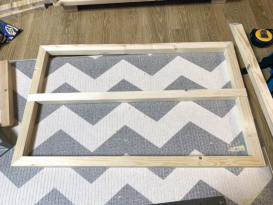 2층 틀 작업시작~! 이것도 설계와는 다르게 즉흥적으로 제작~! 45도 사각모서리와 가운데는 짜맞춤으로 했다.