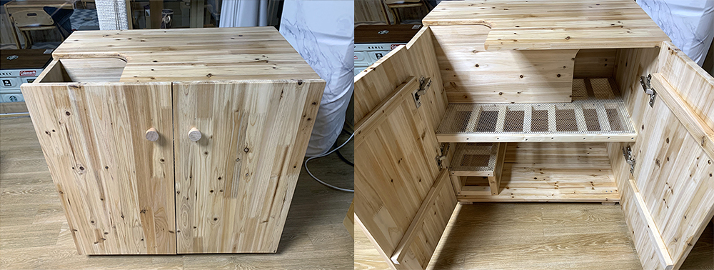 전면 좌우 문짝도 싱크경첩으로 달고 얼추 완성했다. 초보로서 싱크경첩도 처음 달아보는데 이것도 쉬운 것이 아니다. 암튼 마지막으로 대충 사포질 하고, 바니쉬 칠을 두 번 해줬다. (솔직히 갈수록 체력이 달리니 집중력이 떨어졌다.)